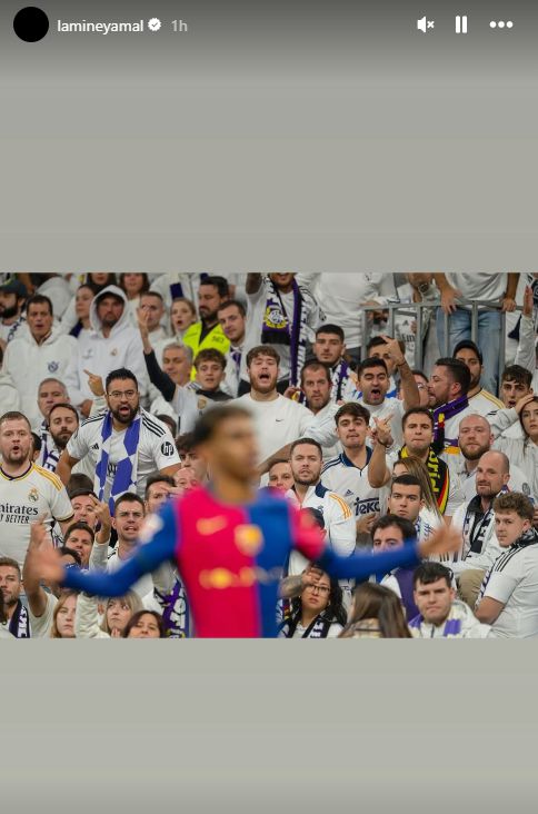 而在竞赛开端前一天,亚马尔又在社交媒体上晒出了上赛季巴萨客队场4-0皇马时的庆祝图。