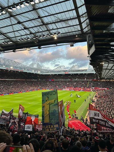 而今夏引援加盟的巴西国脚库尼亚也在本场竞赛打进他个人曼联首球,赛前有球迷举着印有库尼亚版“耶稣像”的旗帜被拍下。