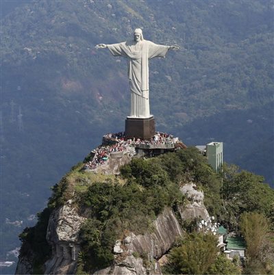 该旗帜是由巴西著名的耶稣像改编而成。该雕像位于巴西里约热内卢市蒂茹卡国家公园内,是为纪念巴西独立100周年而创作的,高30米,双臂展开28米,重1145吨,基座面积100平方米。