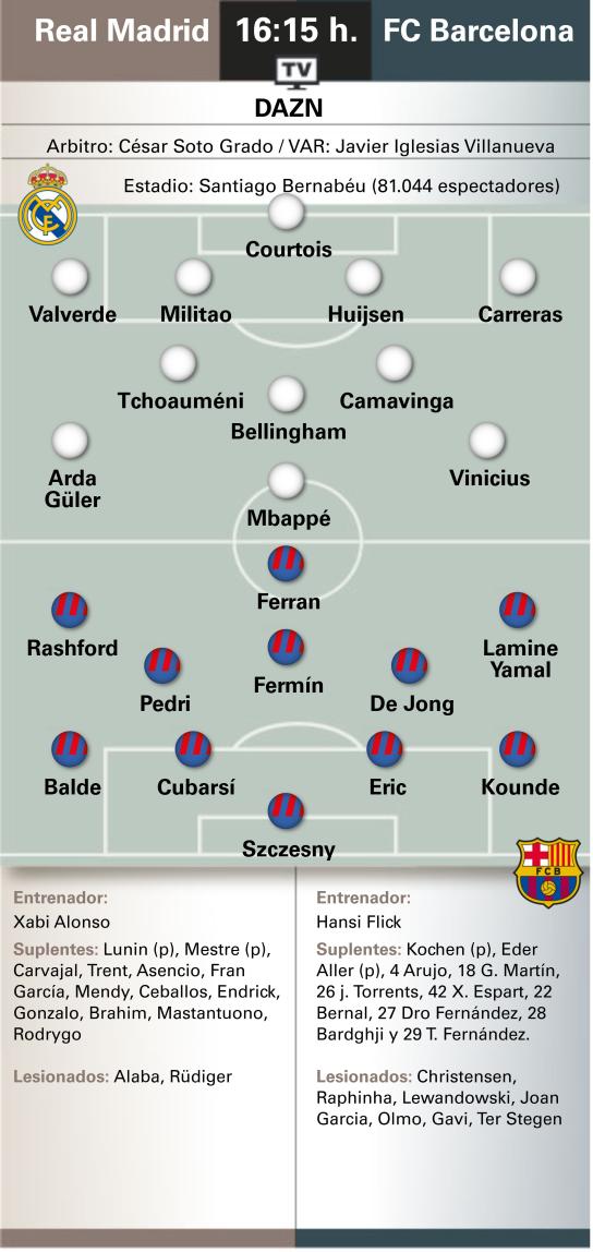 6686体育平台10月26日讯 北京时间今晚23点15分,西甲国家德比将在伯纳乌上演。皇家马德里主队场迎战巴塞罗那,这不仅是赛季首回合“国家德比”,更是一场争夺榜首的直接对话——如果取胜,巴萨将逆转局皇马登顶积分榜。赛前,《世界体育报》对两队首发进行了预测。