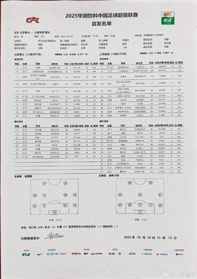 6686体育平台10月26日讯 博主“牛眼看球”透露,山东泰山临时变更的与海港一役的首发,其中路易斯·洛佩斯下场,彭啸变为首发。