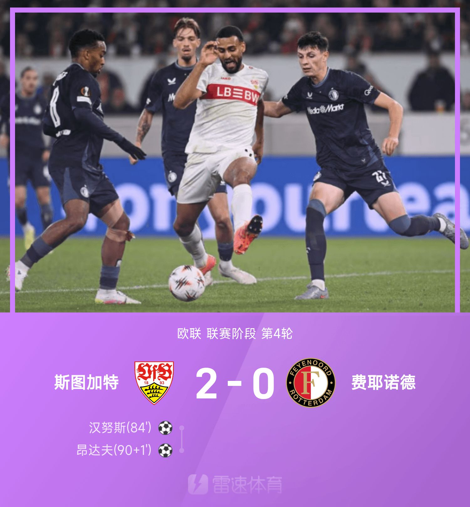 欧联战报:汉努斯破门,昂达夫建功,斯图加特2-0费耶诺德