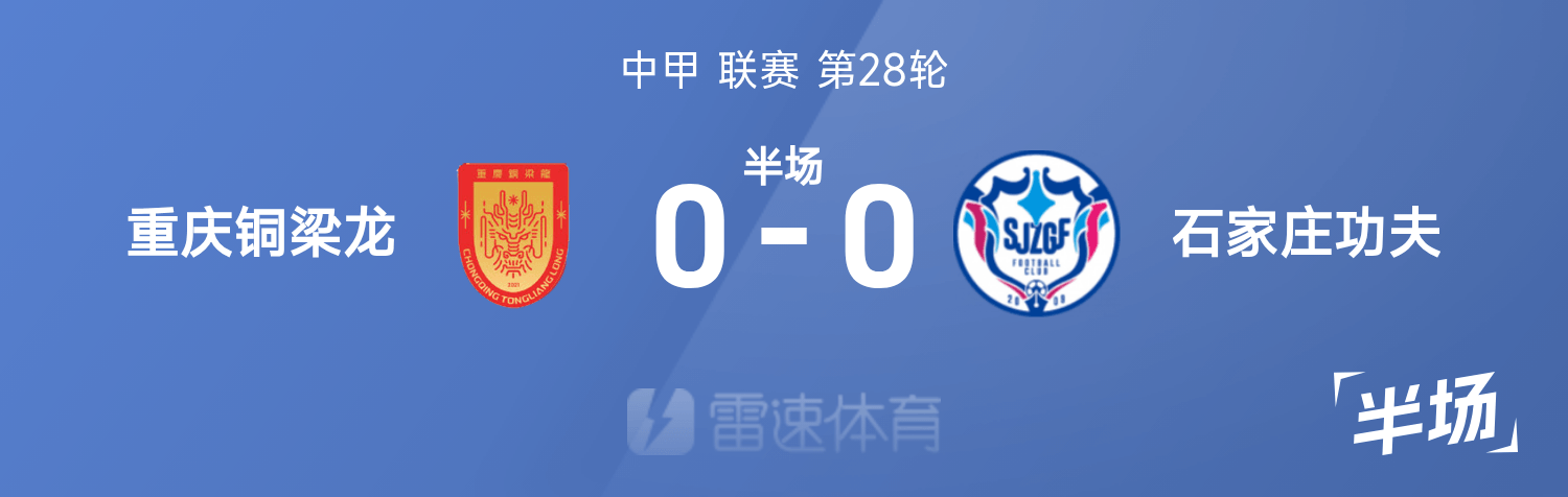 6686体育平台10月26日讯 25赛季中甲联赛事第28轮,重庆铜梁龙迎战石家庄功夫。半场战罢,双方赛果分暂为重庆铜梁龙0-0石家庄功夫。