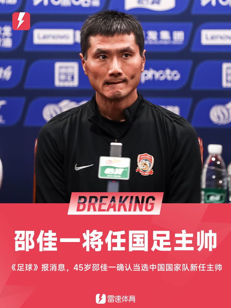 6686体育平台11月5日讯 据《足球报》 报道,前中国男足国脚、助教&现青岛西海岸主帅邵佳一确认当选中国男足主帅。