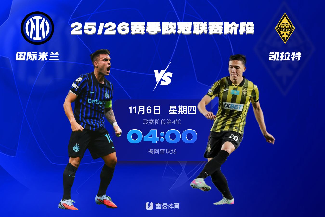 6686体育平台11月5日讯 北京时间6日凌晨4时,欧冠联赛事阶段第四轮,国际米兰将坐镇主队场对阵哈萨克斯坦球队凯拉特。