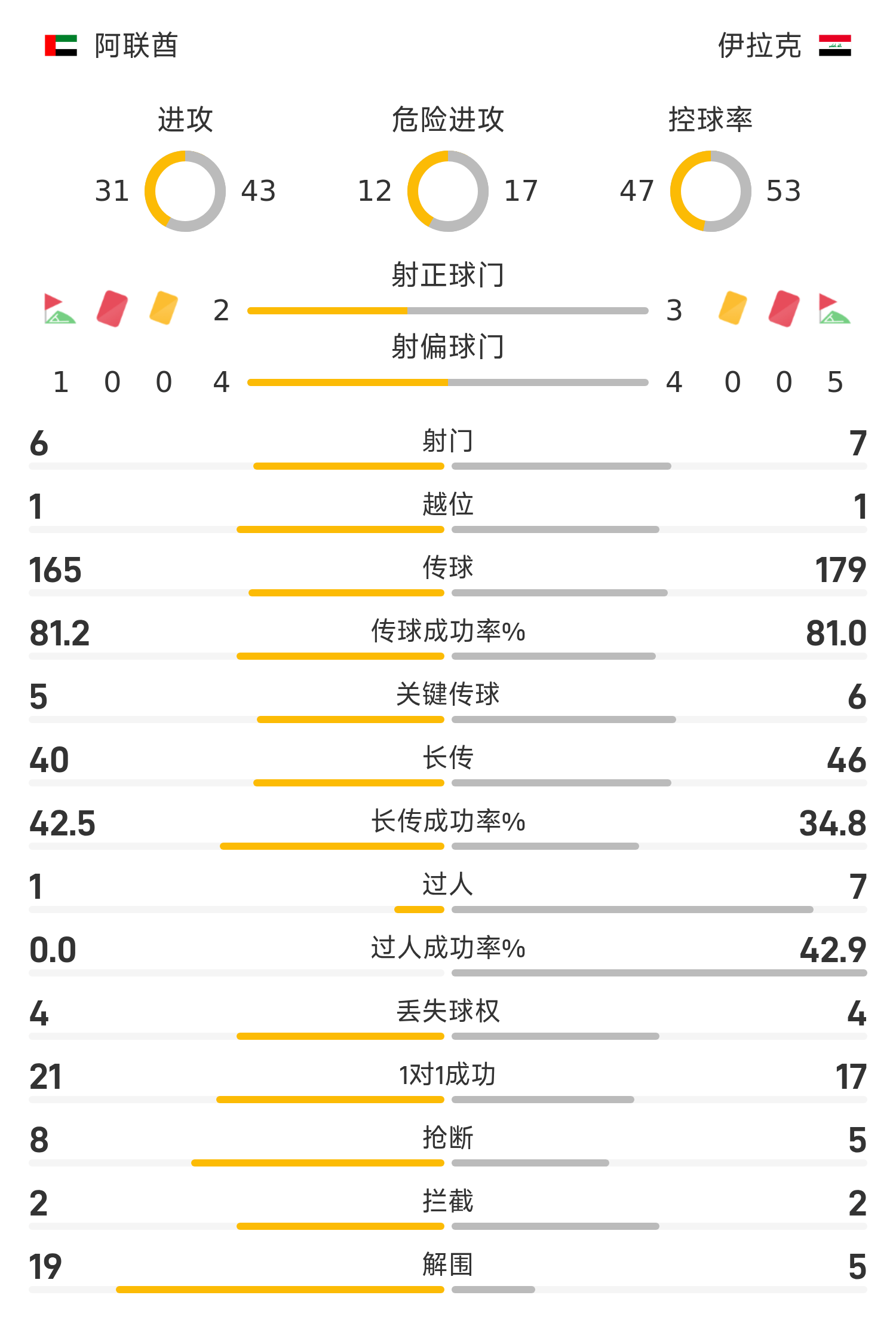 阿联酋首发阵容:17-伊萨、2-阿马拉尔、5-祖希尔、16-梅洛尼、3-皮门塔、14-吉梅内斯、20-卢安、6-拉马丹、15-纳德、23-阿迪尔、9-苏海尔