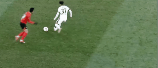 8’邦本宜裕三秒区外带球摆脱守卫起左脚外围射门,李冠希将球挡出