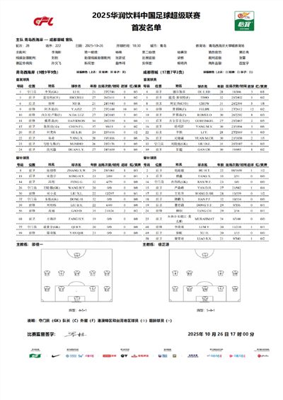 6686体育平台10月26日讯 中超联赛事第28轮,青岛西海岸主队场迎战成都蓉城,赛前双方首发出炉。