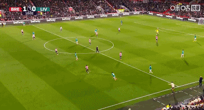 45+5’ 凯尔凯兹门前抢点得手,利物浦1-2布伦特福德