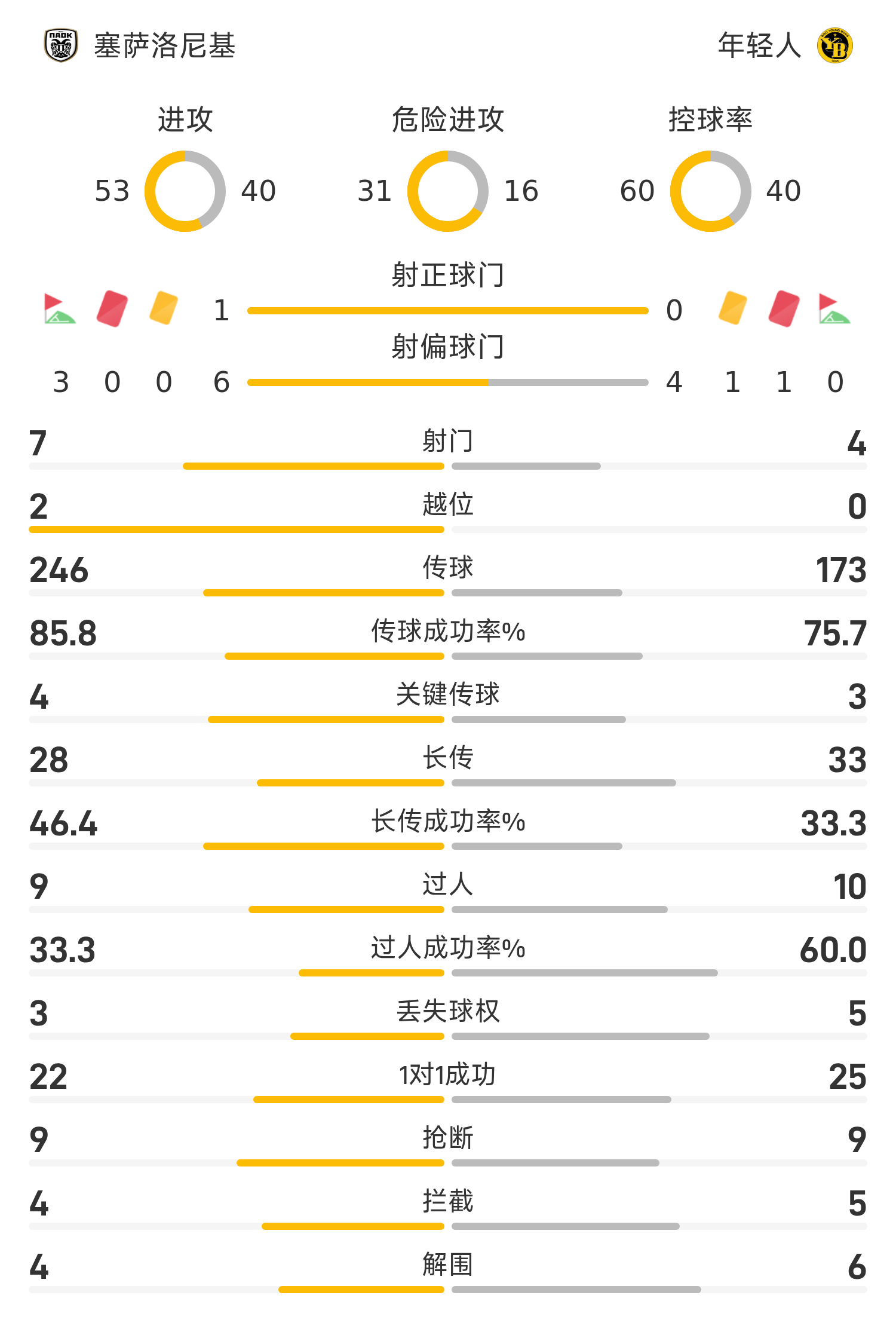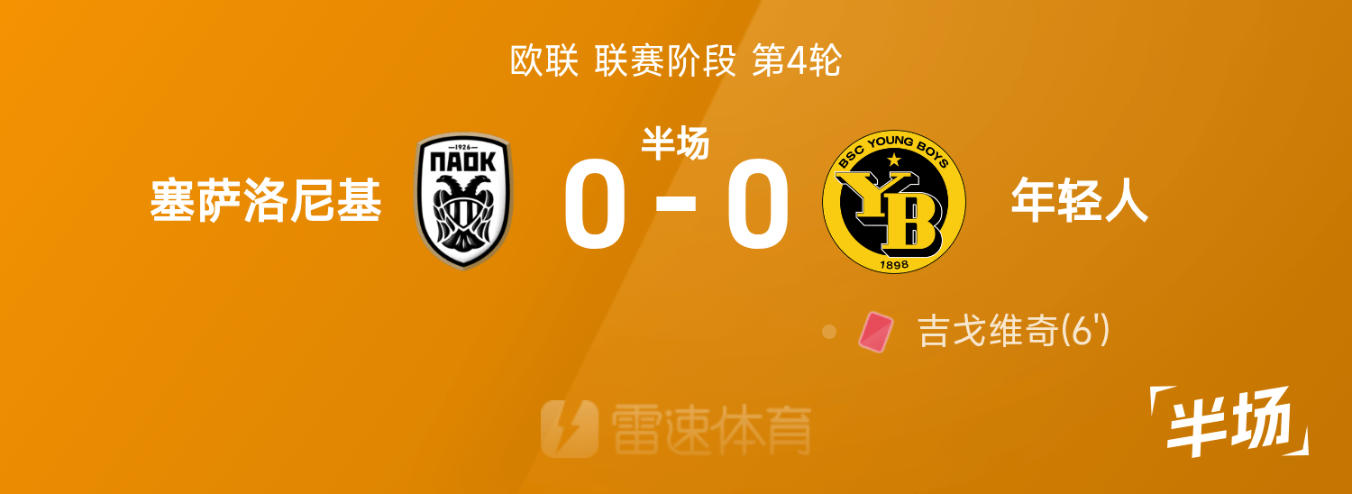 6686体育平台11月07日讯 25/26赛季欧联联赛事阶段第4轮,塞萨洛尼基迎战年少人。半场战罢,双方赛果分暂为塞萨洛尼基0-0年少人,吉戈维奇染红。