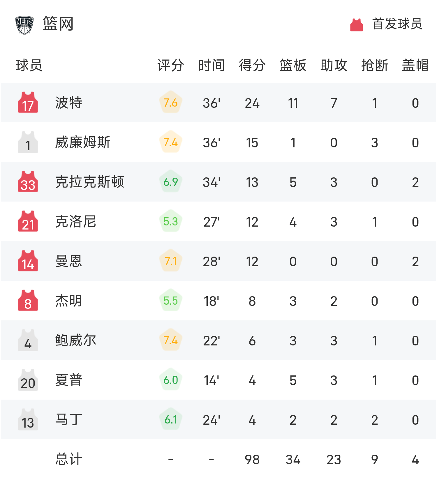 球员数据 查看更多