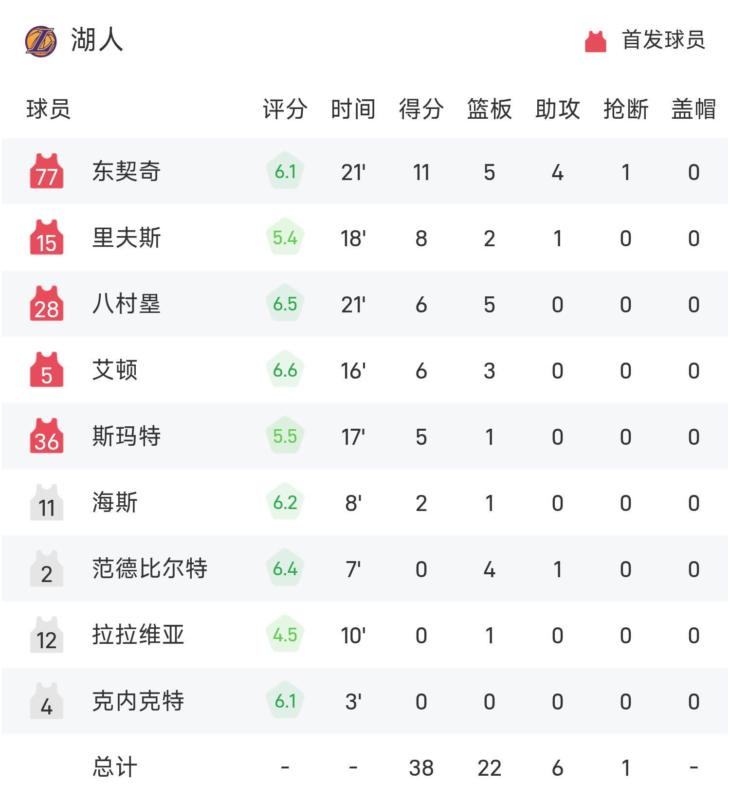 NBA半场:SGA18分,东契奇11分,雷霆70-38领跑位湖人