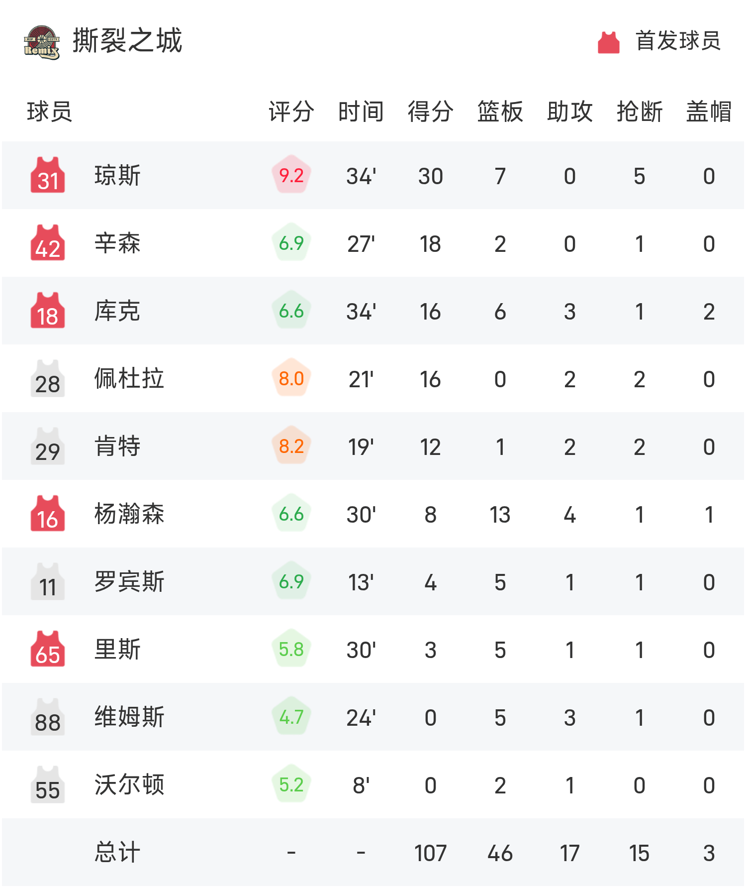 6686体育平台11月15日讯 25/26赛季NBA G联赛事,山谷太阳对阵撕裂之城。双方全场战罢,山谷太阳104-107不敌撕裂之城。琼斯砍下全场最高的30分7板,杨瀚森8分13抢篮板,率领撕裂之城胜利逆转对手。